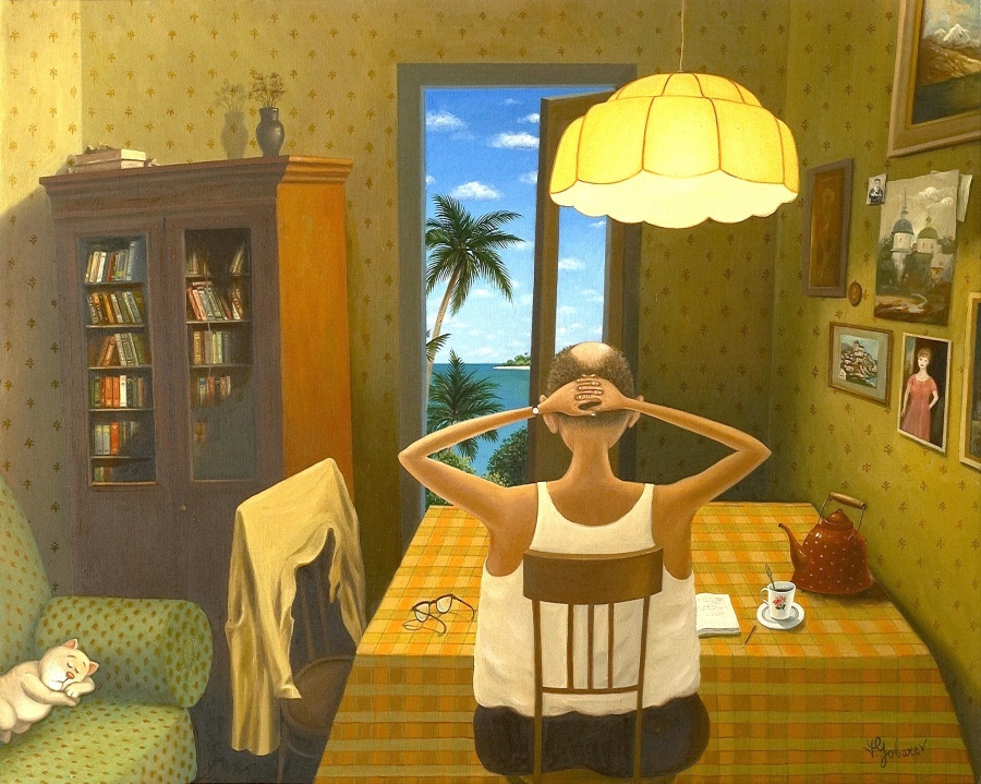 На картинах британского художника Нила Саймона все не так, как кажется на первый взгляд. «Для меня мир вокруг — это череда хрупких и постоянно меняющихся форм, теней и границ», — говорит Саймон. И на его картинах все действительно иллюзорно и взаимосвязано. Границы смываются, а сюжеты перетекают друг в друга.