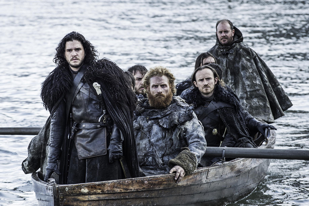 84. Сцена прибытия Джона Сноу на лодке в Суровый Дом описана в сценарии так: «Он выглядит, как Джордж Вашингтон, переправляющийся через Делавэр, только волосы гораздо красивее».
