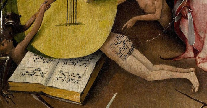 В 2014 году блоггер Tumblr под псевдонимом Amelia изучала «Сад земных наслаждений» и заметила своеобразную деталь: на пятой точке одного из подвергающихся мучениям грешников Босха был изображен ряд музыкальных нот. Она увеличила эти ноты, переписала их в современных обозначениях и записала современную версию для фортепиано «600-летней песни из ада». Кто-то же продолжил ее творчество и написал текст песни, весьма неприличного содержания.