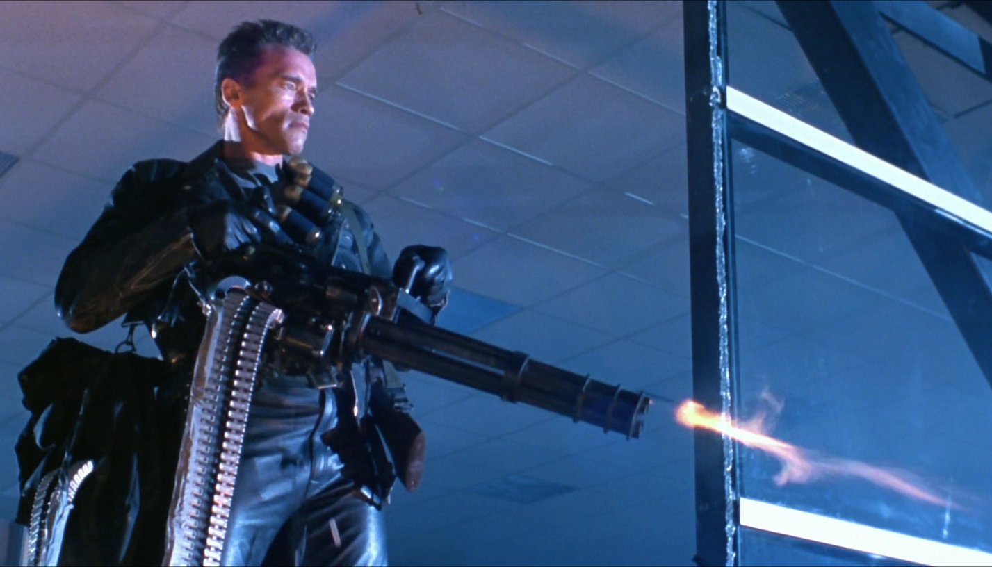 4. Веселья на съемках добавляли и другие актеры. Например, пулемет Терминатора, сделанный на заказ, был таким тяжелым, что никто, кроме Шварценеггера, поднять его не мог. Если актер после тяжелого дня оставлял его не на месте, а декораторам нужно было изменить обстановку на площадке — работа вставала, пока Арни не возвращался и не поднимал тяжеленный аксессуар.