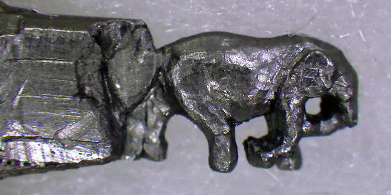 Поверхность карандаша под ногами слонов специально обработана так, чтобы создать впечатление травы, приминающейся под ногами слонов