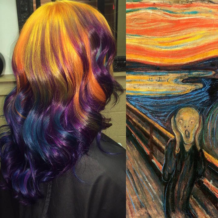 Стилист создаёт уникальные причёски, окрашивая волосы в цвета классических картин
