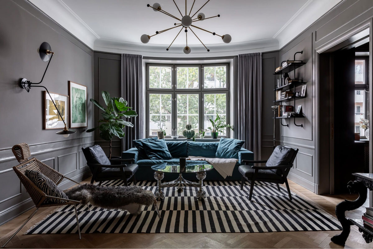 Благородные оттенки — графитовый, темно-синий, глубокий зеленый, терракотовый или цвет увядшей розы — характерны для богатого интерьера. Они создают ощущение глубины и уюта, а чистые яркие цвета часто ассоциируются с масс-маркетом. Возьмите один глубокий цвет и сделайте его основой для стен, крупной мебели или текстиля. Пусть темные тона вас не пугают: при хорошем свете они выглядят роскошно.