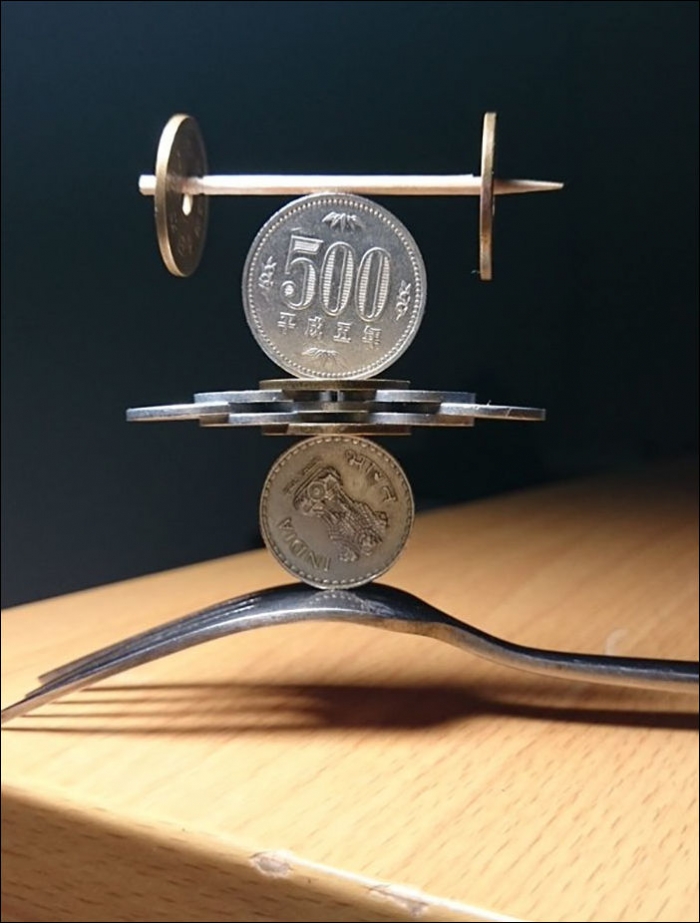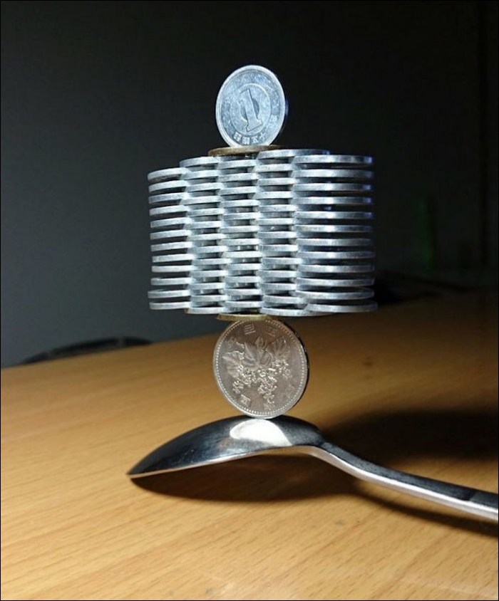 Нахальный вызов гравитации: японец составляет невероятные фигуры из монет
