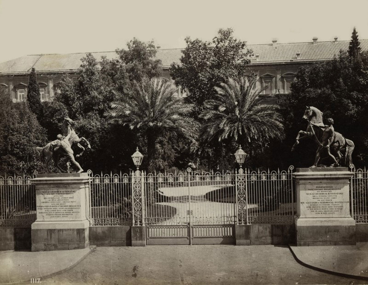 Знаменитые кони Клодта украсили Аничков мост в 1841 году: две группы были бронзовыми, а две — окрашенным гипсом, так как первые две бронзовые статуи Николай I подарил прусскому королю Фридриху Вильгельму IV. Новые бронзовые кони, установленные на мосту, вскоре отправились королю обеих Сицилий Фердинанду II. Лишь третья партия, установленная в 1851 году, осталась на мосту навсегда, а первые две нашли место в Берлине и Неаполе.