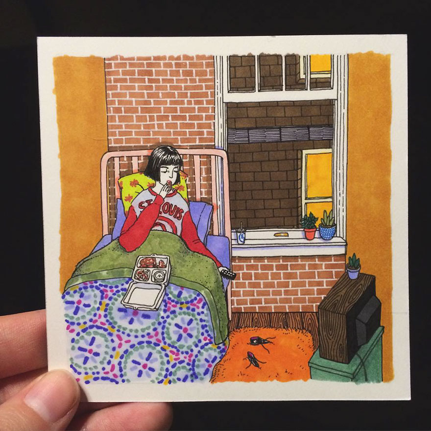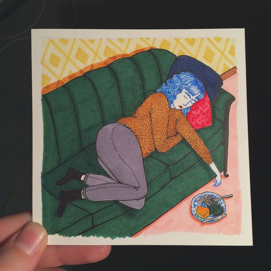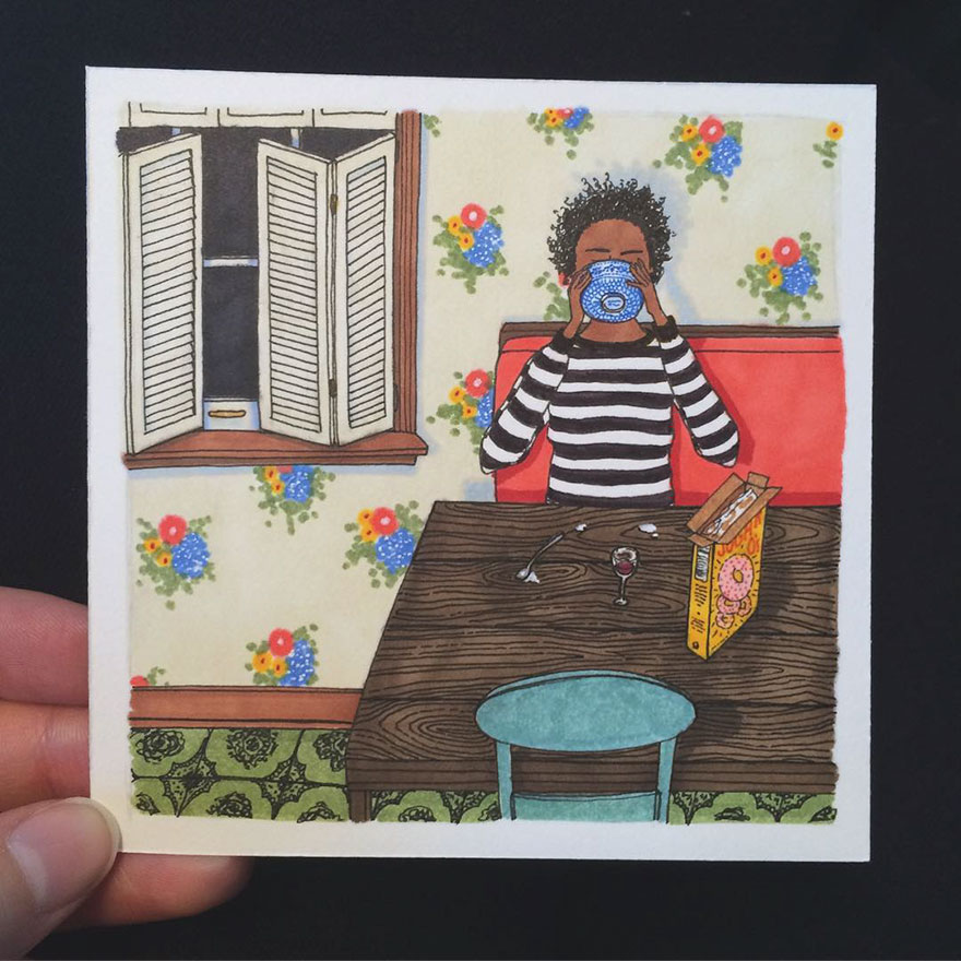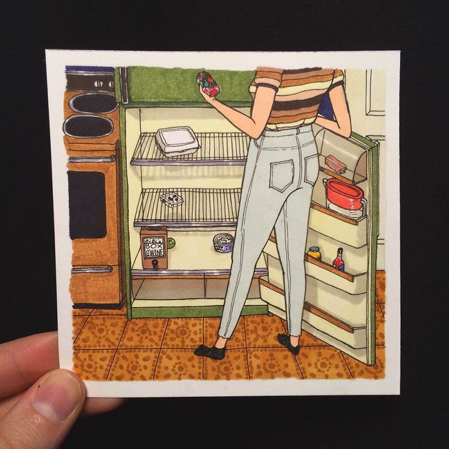 То, как человек ведет себя в повседневной жизни, может рассказать о многом. Художнице Салли Никсон удалось передать в своих иллюстрациях то, что делают абсолютно все женщины на Земле, оставшись одни.