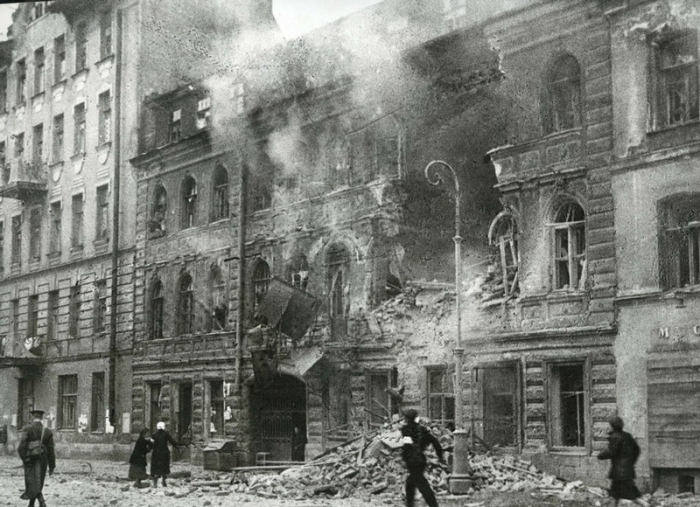 Улицы Ленинграда после бомбардировки, 1941 г.