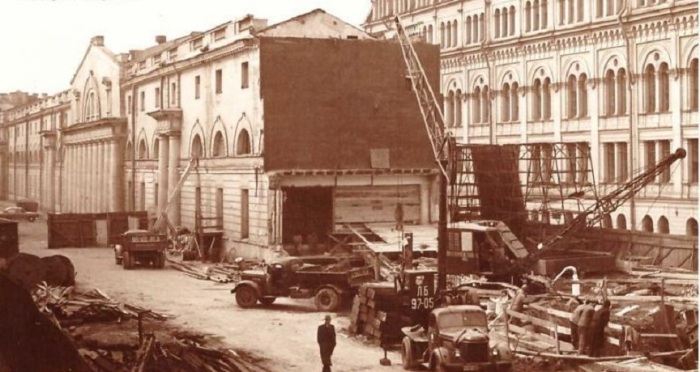 Процесс сноса зданий Перинных рядов из-за строительства метрополитена, 1963 г.