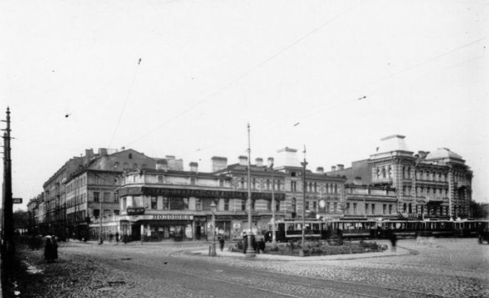 Трамвайная развязка на площади около Финляндского вокзала, 1910 г.