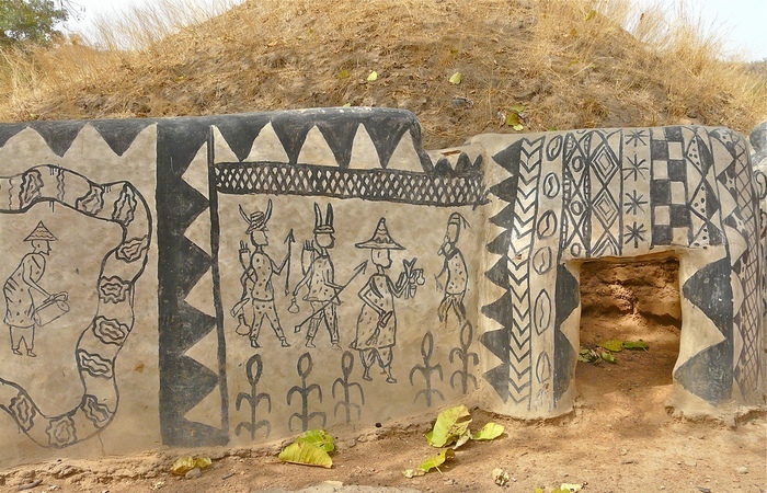 В деревне есть настоящий «королевский дворец», хотя стоит отметить, что королевская резиденция в Западной Африке — вовсе не то, к чему привыкли в Европе. Здесь дворец Кур Рояль — несколько небольших глинобитных сооружений, полностью покрытых сложными геометрическими узорами из красок природного происхождения. Делается это для того, чтобы отличить эти строения от домов простых людей.
