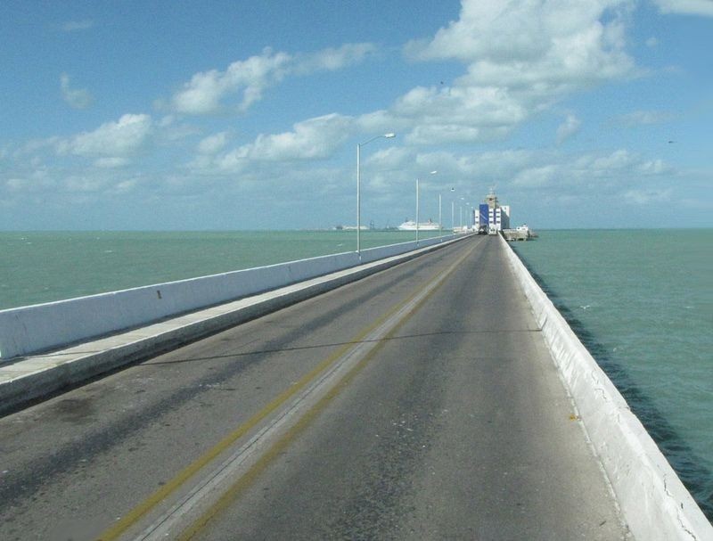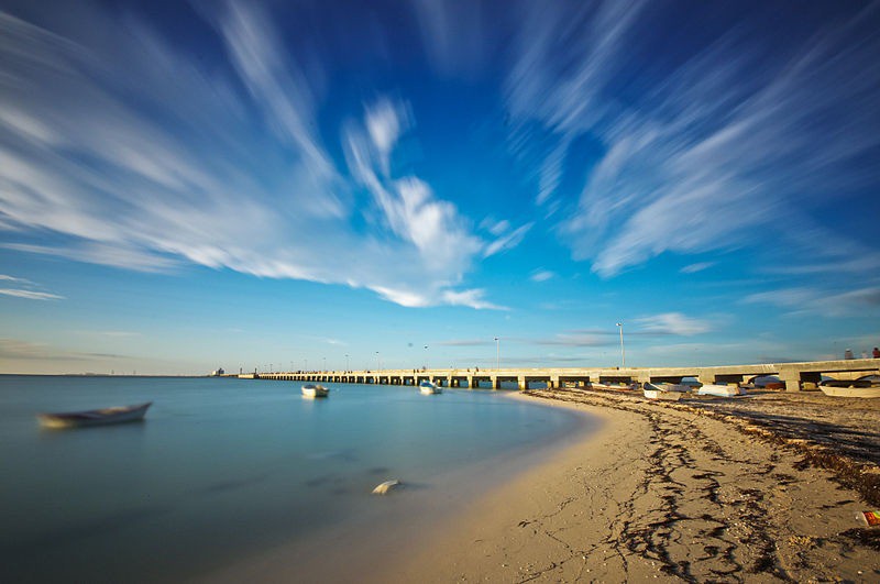 Побережье всего штата Юкатан очень мелкое, и достаточная для прохождения больших кораблей глубина находится на значительном расстоянии от берега, из-за чего пирс и пришлось делать таким длинным.
