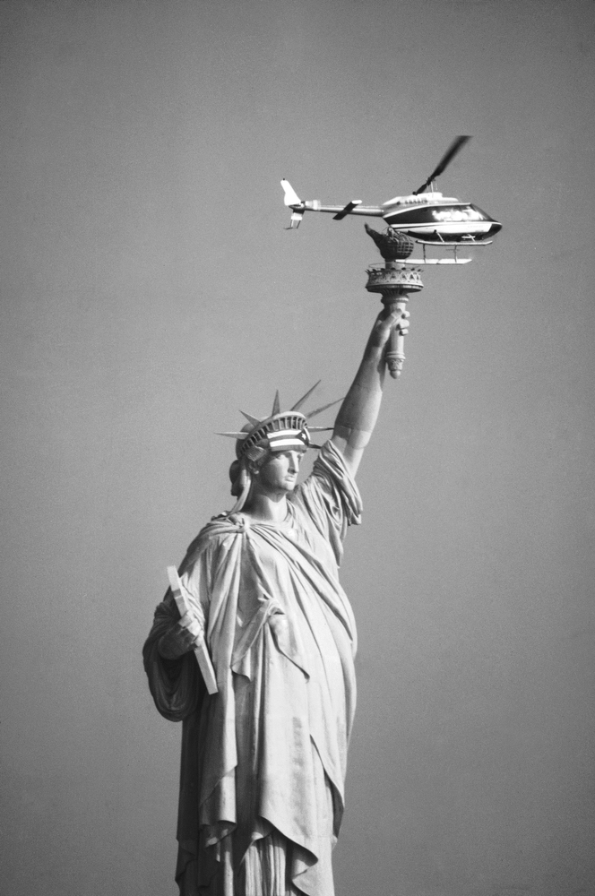 37. Вертолет над статуей Свободы в Нью-Йорке, 25 октября 1977 года. Более двух десятков демонстрантов захватили статую и закрепили у нее на лбу флаг Пуэрто-Рико. Они требовали освобождения четырех пуэрто-риканских националистов, отбывающих срок за расстрел пяти конгрессменов в 1954 году. После девяти часов осады их арестовали.