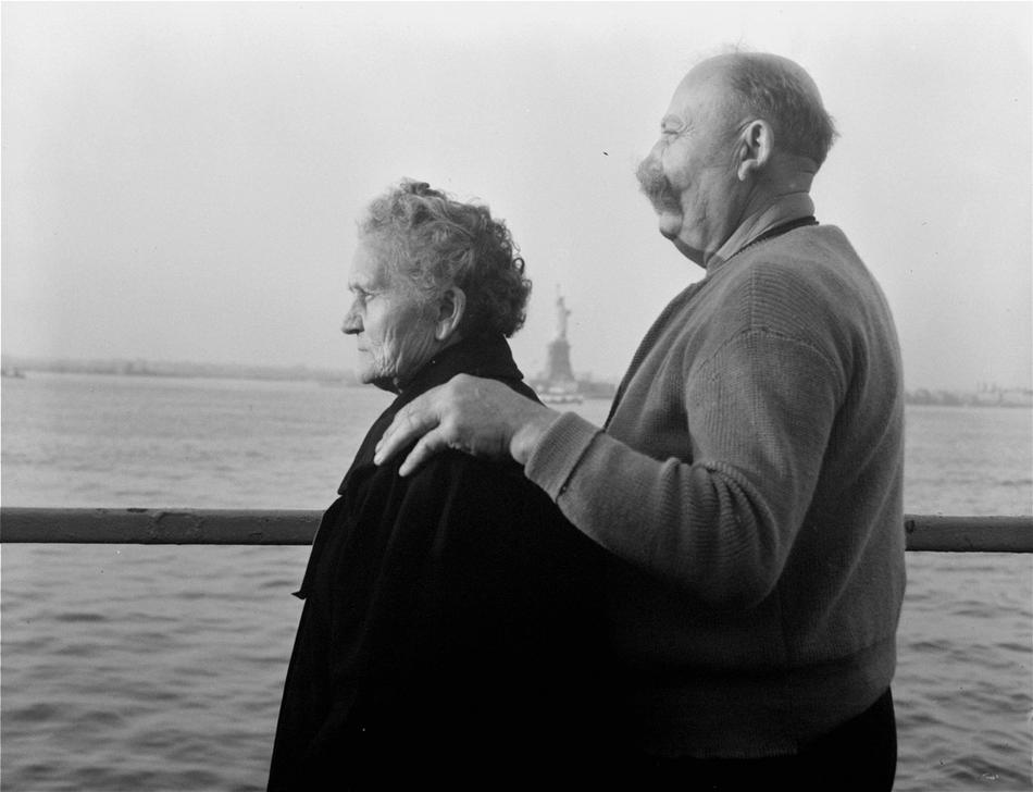 22. Герр и фрау Рерих из Баварии прибывают в Нью-Йорк на борту судна General Langfitt вместе с 1267 беженцами из Европы, 28 октября 1956 года. Эта пожилая пара поселится в штате Огайо.