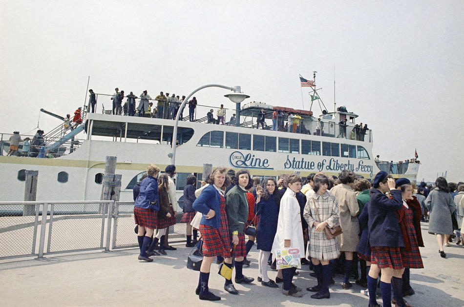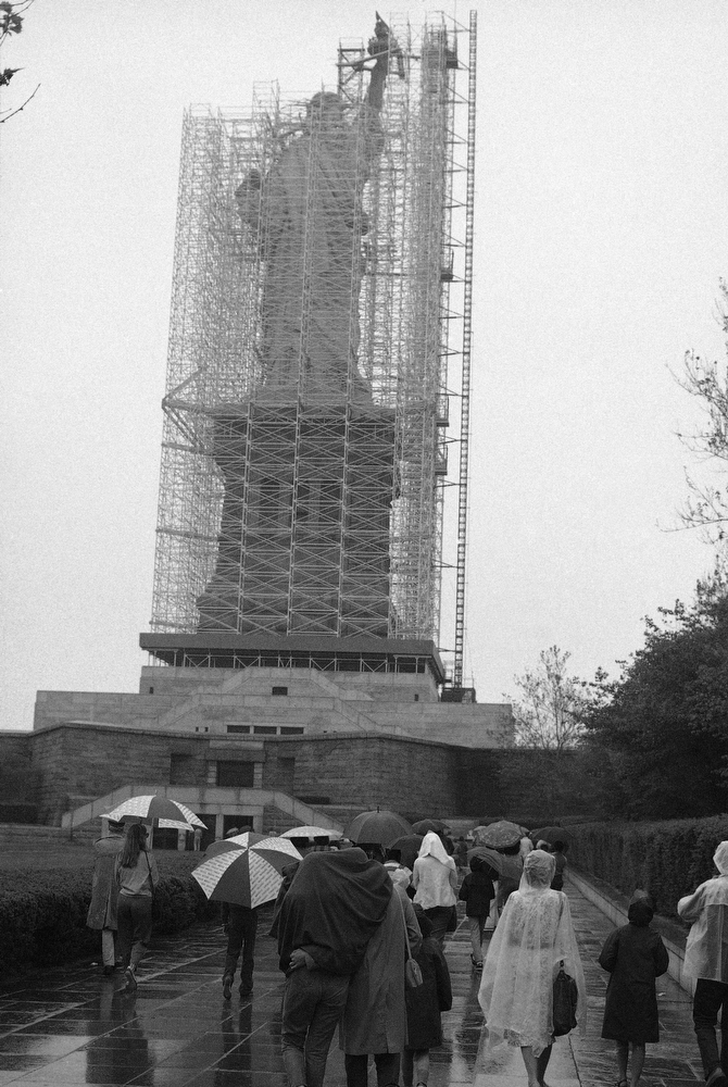 45. Посетители Либерти-Айленда у закрытой лесами Статуи Свободы, 28 мая 1984 года.