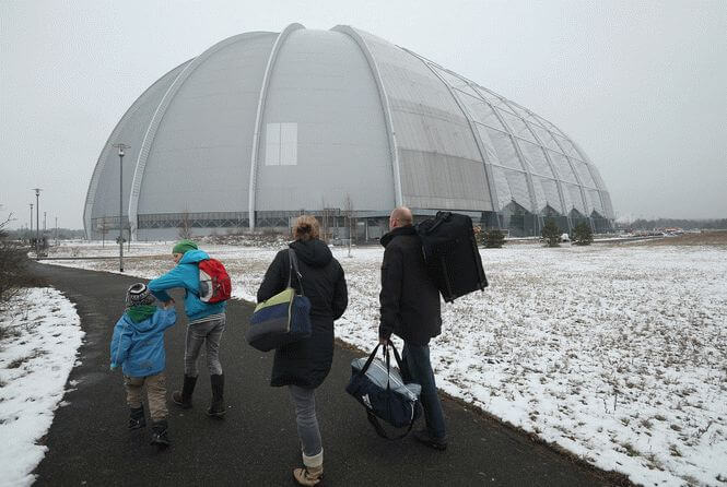 Единственное, чем раньше было примечательно строение, это своими колоссальными размерами. Ведь это был эллинг для дирижаблей. Его длина достигает 360 метров, а ширина — 210 метров.