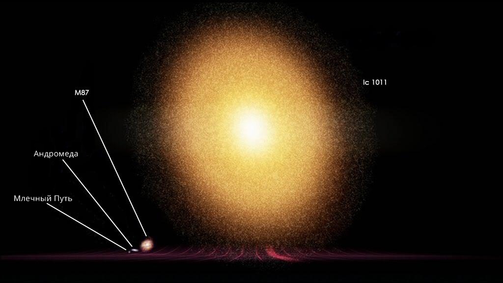 Кроме того, Млечный Путь — относительно небольшая галактика в сравнении с IC 1011, расположенной за 350 млн световых лет от Земли