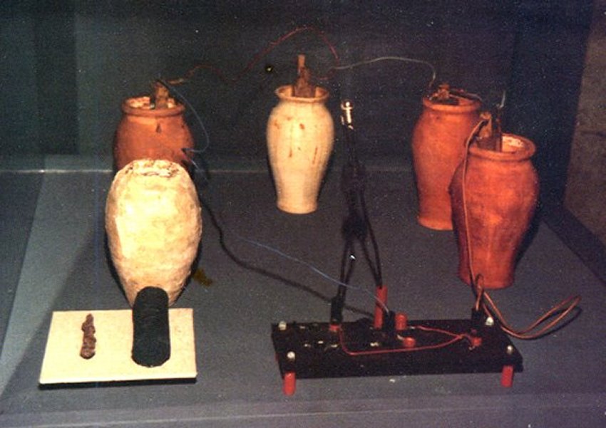 Это название ряда артефактов, обнаруженных в 1930 году в Ираке. Сосуды пострадали от коррозии, а потому археологи предположили, что они, вероятно, использовались для хранения уксуса или вина. Однако позже возникла гипотеза о том, что эти сосуды могли использоваться в качестве гальванических элементов, чтобы покрывать золото серебром. Хотя «Разрушители легенд» доказали, что это, по крайней мере, теоретически возможно, полемика относительно их предназначения продолжается до сих пор.