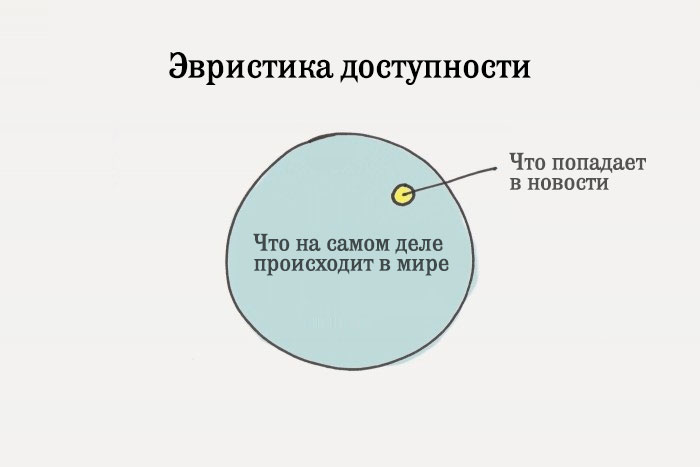 Эвристика доступности (англ. availability heuristic) — это весьма распространённая ошибка, которую наш мозг делает, предполагая, что примеры, легко приходящие нам на ум, являются самыми важными или превалирующими вещами.