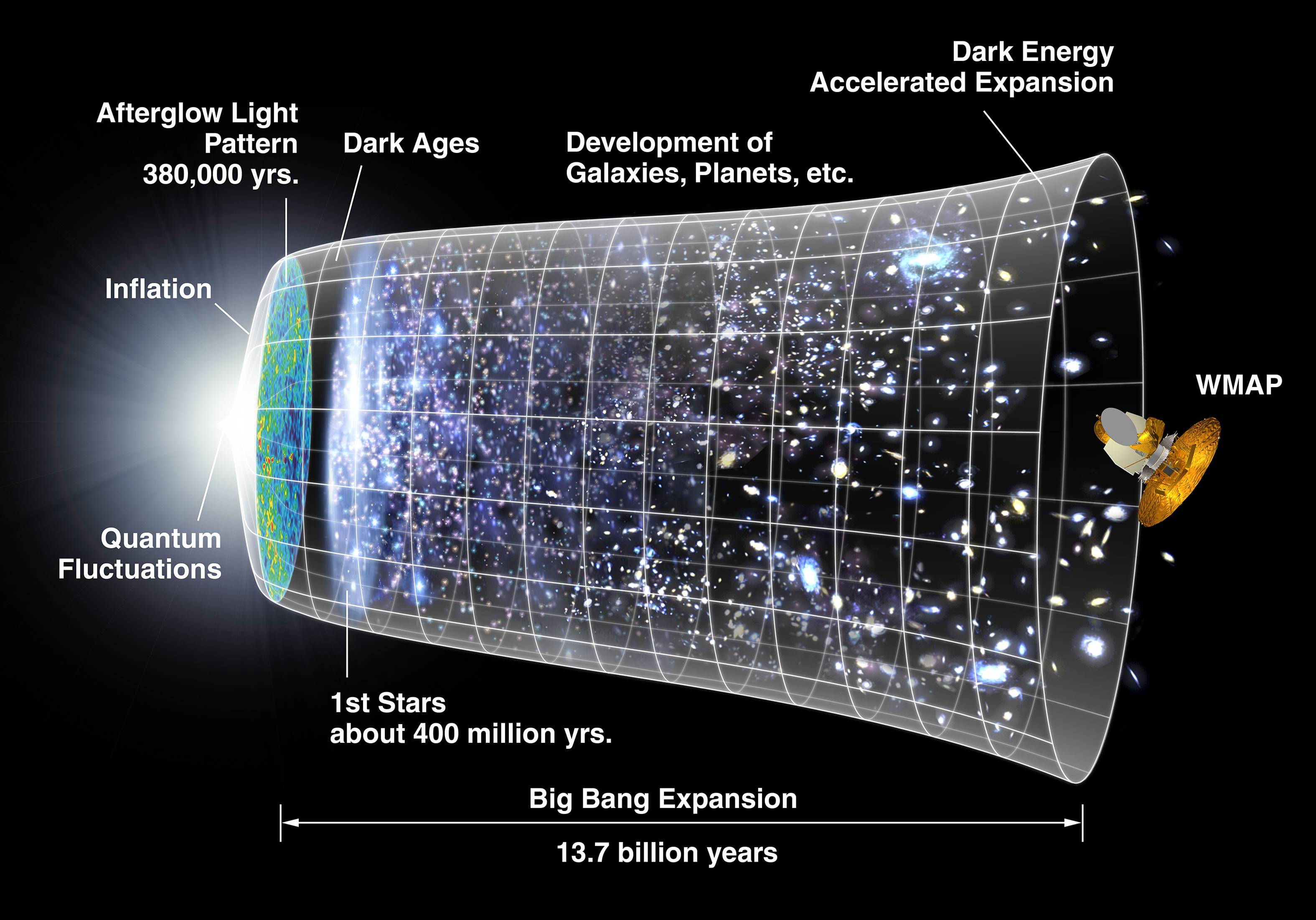 Приблизительно 13,7 млрд. лет назад Вселенная была сжата в одну невообразимо малую точку. Об этом свидетельствует не только всем известный эффект красного смещения, но и все решения уравнений Эйнштейна. Когда-то в прошлом расстояние между соседними галактиками должно было равняться нулю. Вселенная должна была быть сжата в точку нулевого размера, в сферу с нулевым радиусом. Плотность Вселенной и кривизна пространства-времени в эти славные времена должны были быть бесконечными. Они перестали быть таковыми только при Большом взрыве.
