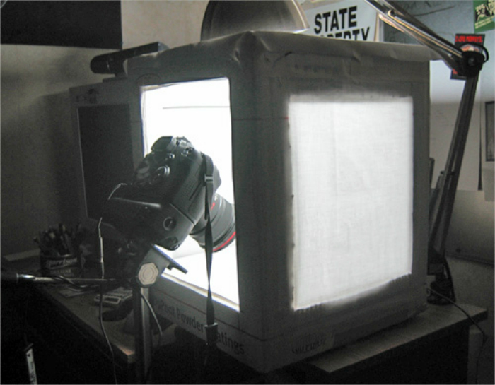 Тем кто решил попробовать себя в предметной съемке, наверняка пригодиться идея создания самодельного лайтбокса, который обеспечит хороший фон и правильное освещение. Для начала сделайте из проволоки каркас в виде куба, пять стенок которого нужно обклеить белой не слишком плотной бумагой, над всей конструкцией стоит разместить настольную лампу.