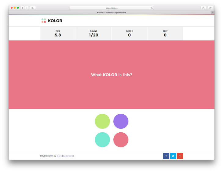 Сильно затягивающая игрушка. Надо выбрать из кругов внизу круг того же цвета, что и строка сверху. С каждым разом кругов внизу страницы становится все больше, а разница между их цветами — все меньше.
