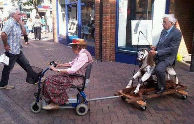 Пожилая пара не теряет чувства юмора