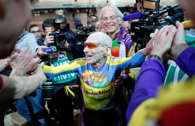 102-летний французский велосипедист Роберт Маршан побил мировой рекорд среди людей, которым более 100 лет, проехав 27 километров за 1 час.