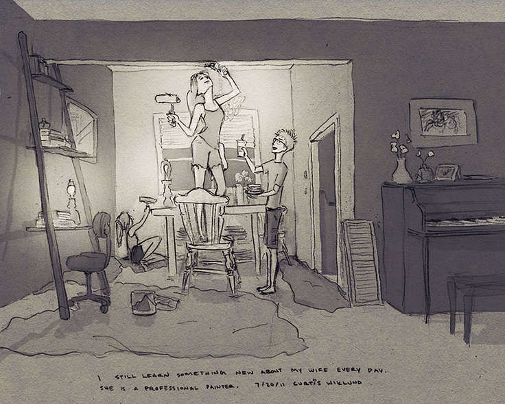 Так он и сделал и создал 365 рисунков-скетчей, по одному на каждый день года. Результат своего художественного эксперимента Кертис преподнёс жене на день рождения, а также выложил на собственном сайте.