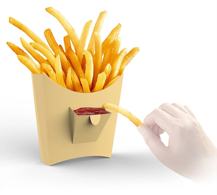 Упаковка для картофеля фри с отделением для соуса
