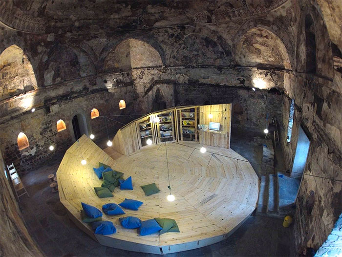 Современная библиотека внутри старого здания