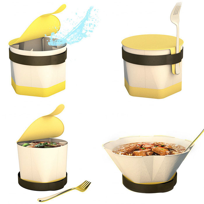 Коробочка для супа или лапши быстрого приготовления, разворачивающаяся в удобную тарелку