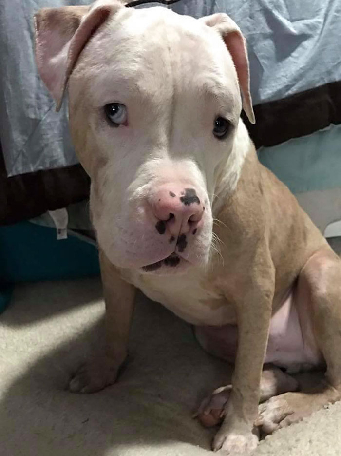 Глухого питбуля искусали пчёлы и бросили хозяева, но судьба повернулась к нему лицом