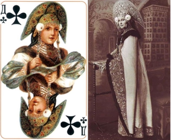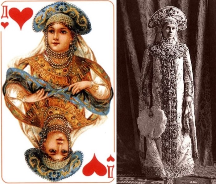 Наверное, каждый из нас видел такую колоду карт — «Русский стиль» — во времена СССР эти карты были одними из самых распространенных. Прототипами для королей и дам в этой колоде стали не пролетарии и колхозницы, а участники последнего костюмированного бала при императорском дворе Романовых в 1903 г.