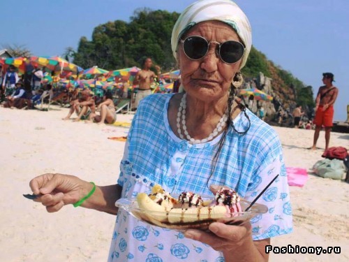 Особую любовь Апашка испытывает к морю, в котором может купаться часами. По словам внучки, бабушка не вылезала из теплых вод в Таиланде, получая удовольствие от мягких волн с бокалом молочной Пина Колады. От экзотики в виде сушеных скорпионов и саранчи женщина отказалась, а вот кокосовые супы очень полюбила.