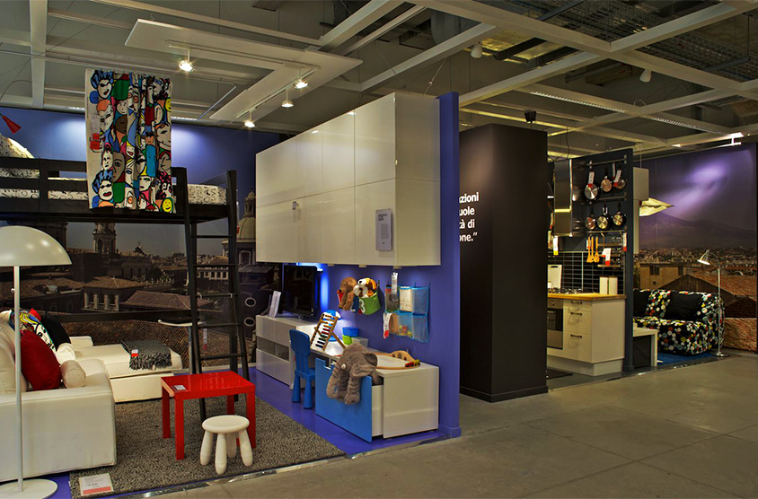 Практически все перегородки внутри салонов IKEA установлены на колесиках и могут перемещаться. Обычно колесики заблокированы, чтобы люди случайно не сдвинули перегородки.