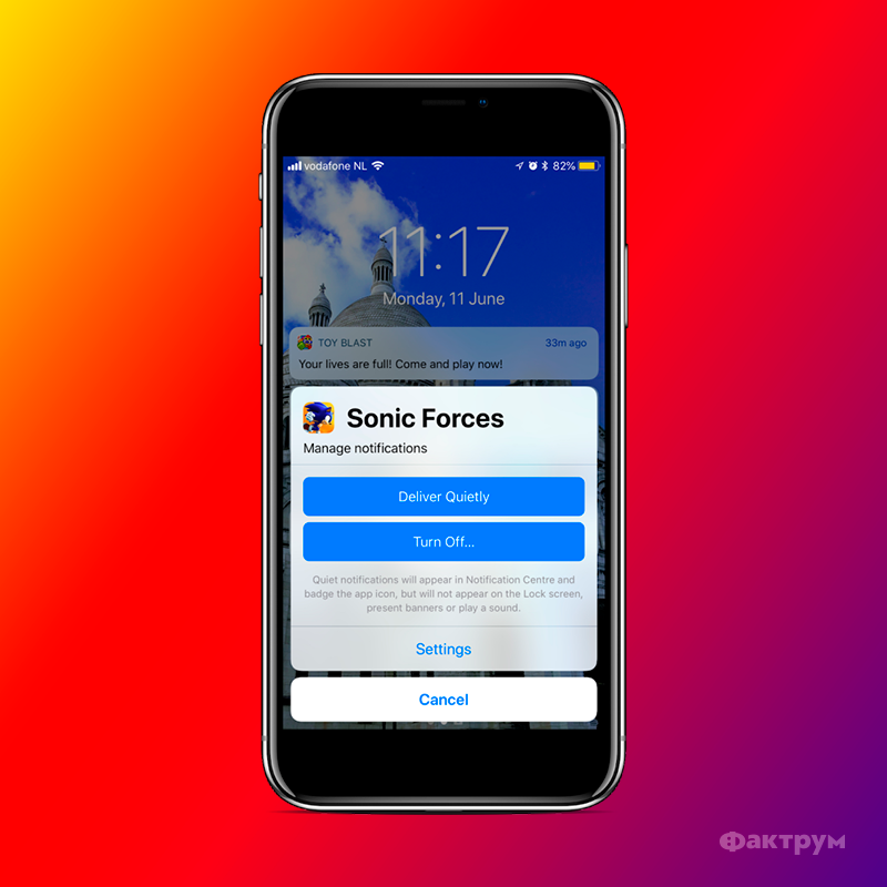 В новой операционке уведомления будут группироваться по приложениям, и можно будет открыть группу, чтобы увидеть отдельные сообщения или же удалить их все целиком. Группами уведомлений можно управлять: быстро выключить, отключить звук уведомлений или воспользоваться меню дополнительных настроек. А если вы будете игнорировать надоедливые уведомления от какого-то приложения, то iOS 12 сама предложит их выключить.