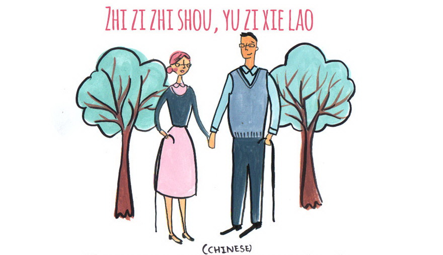 Стареть вместе, держась за руки.