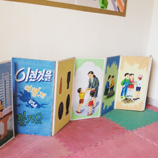Встретить опасные отголоски войны на корейском полуострове можно до сих пор, поэтому власти уделяют такое внимание агитационным материалам для самых маленьких.
