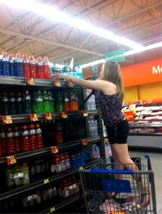 Чтобы достать что-то с верхней полки, нужно немало потрудиться