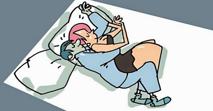 Специалисты говорят, что когда во сне пара переплетается ногами и руками, это свидетельствует о безудержной страсти в отношениях. Как правило, в такой позе пары спят в начале отношений, когда паре хочется чувствовать себя единым целым. Нередко в этой позе спят ревнивые люди.