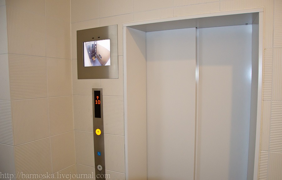 11. На первых этажах домов у лифта висит дисплей, показывающий картинку из кабины. Ну так, для безопасности.
