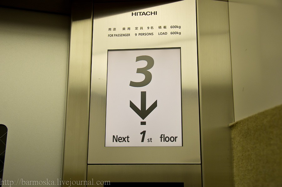 13. Сам лифт комфортный, надписи на английском языке даже присутствуют. Указывает следующую остановку.