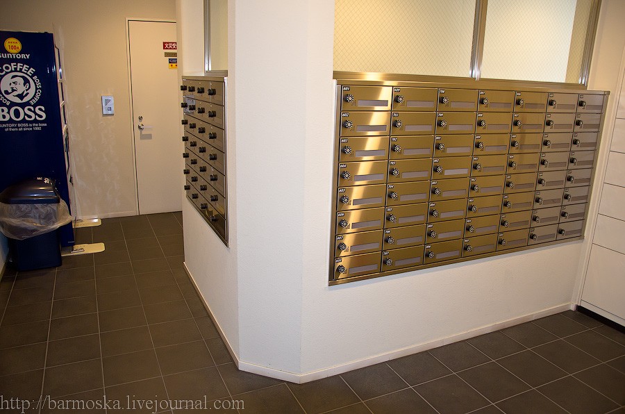 6. Рядом с запасным выходом расположены почтовые ящики и даже есть автомат по продаже напитков.