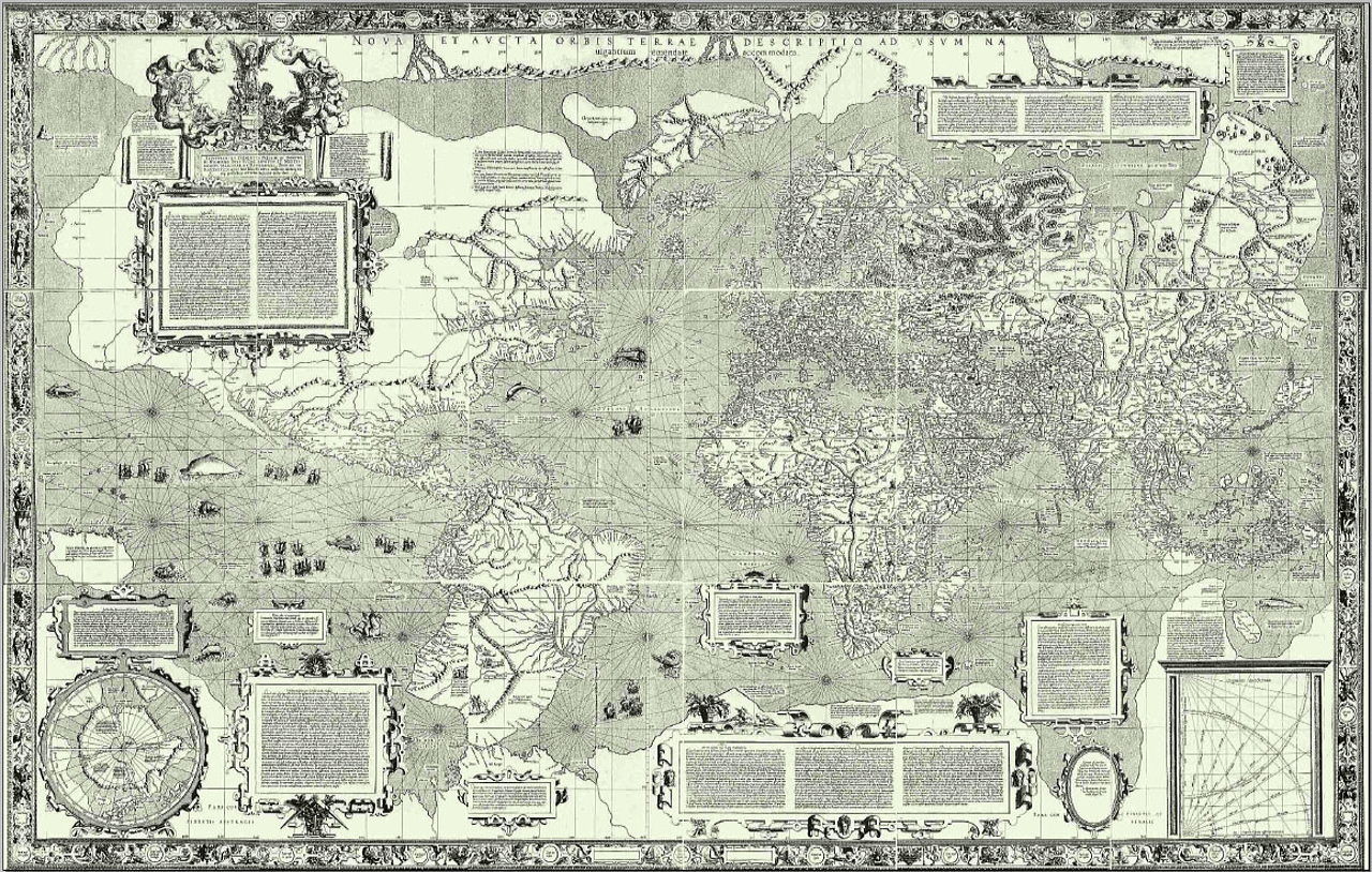 15. Карта мира, созданная Абрахамом Ортелием, автором первого в истории географического атласа современного типа, в 1564 году