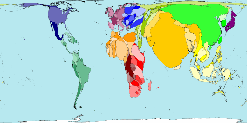 9. Размеры стран мира на этой карте соответствуют численности населения, которое будет проживать в них в 2050 году