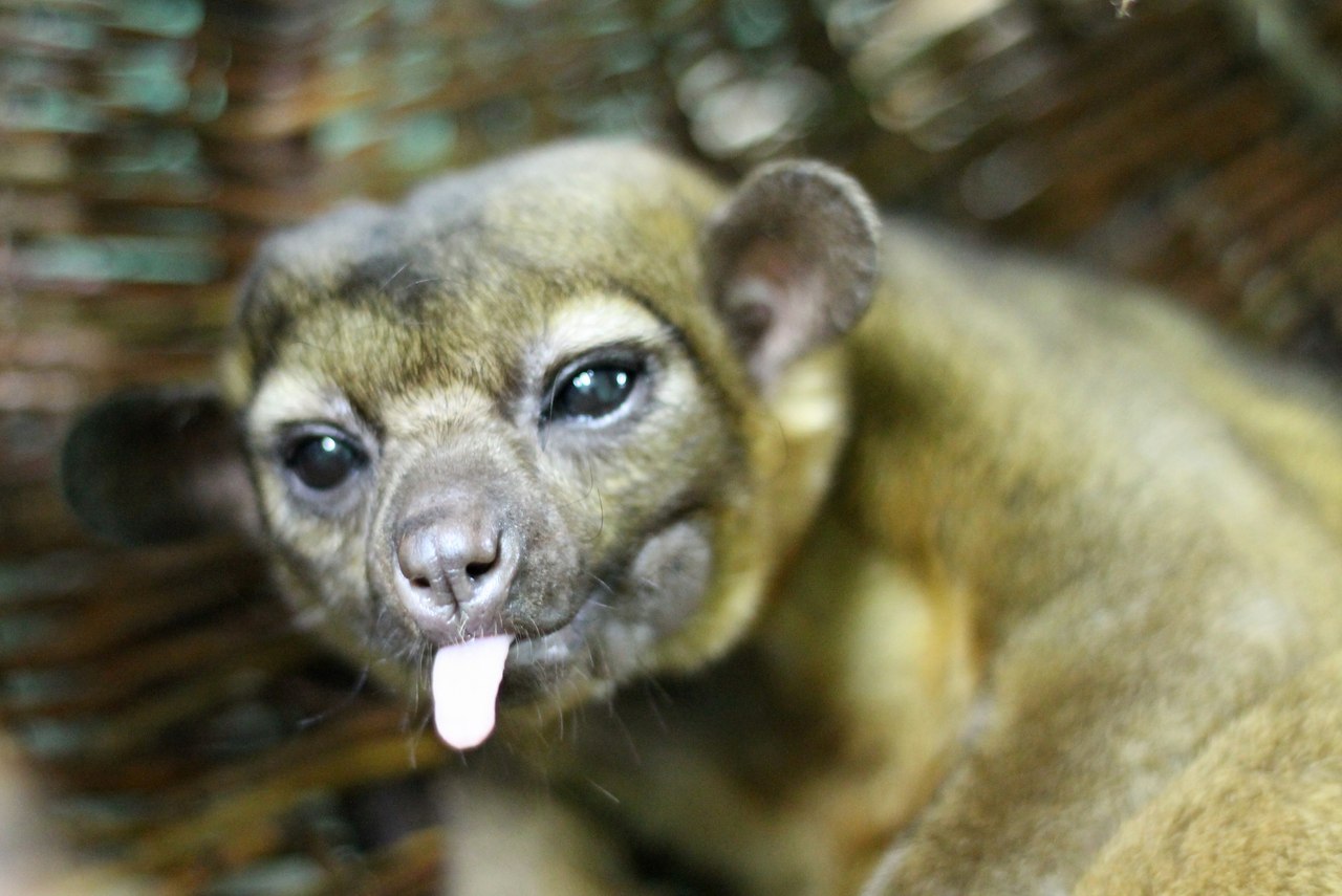 Кинкажу — это хищное млекопитающее из семейства енотовых, обитающее в Центральной и Южной Америке. «Трудно найти более приятное домашнее животное, чем кинкажу. Он привязчив, как дитя. Ласки делают его счастливым. Он нежно прижимается к человеку, когда тот его гладит, и при этом у него, по-видимому, нет никакого коварства».