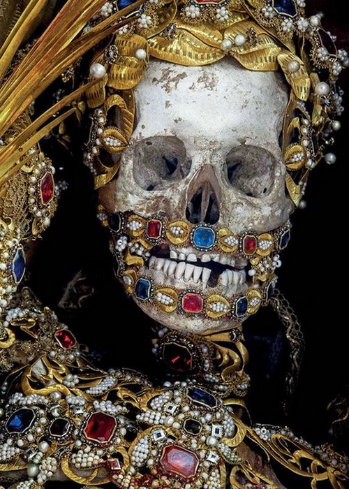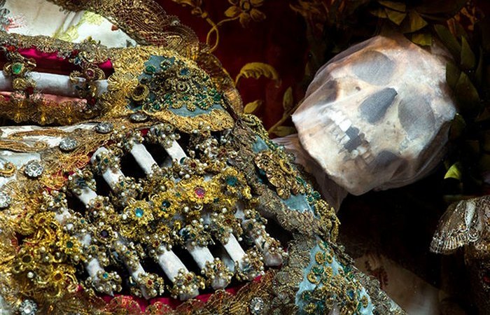 Стоит отметить, что не все найденные скелеты были изначально покрыты драгоценными камнями, некоторые из них были украшены впоследствии, уже после открытия катакомб.