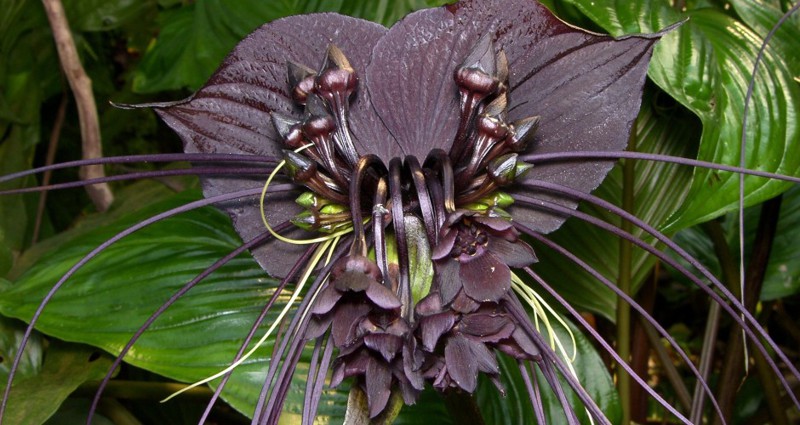 Пожалуй, одно из самых отвратительных на вид растений, какие только можно представить. Своё название растение получило за необычные чёрные цветы, напоминающие по форме висящих вниз головой летучих мышей. Цветы достигают размеров 30 сантиметров в поперечнике, а длинные чёрные «усы», вырастающие из них, бывают по 70 и более сантиметров.