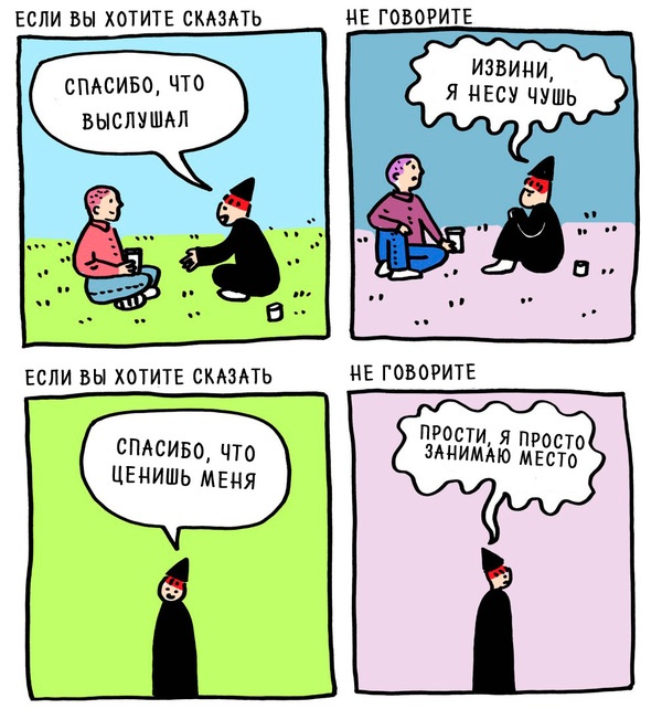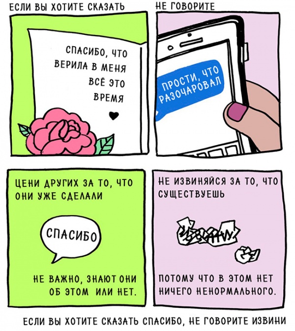 Иллюстратор Yao Xiao на примере простых бытовых ситуаций объясняет, почему иногда «спасибо» лучше, чем «прости». Фактрум полагает, что в этом действительно есть огромный смысл. Только посмотрите, как всё меняется!
