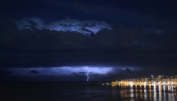 Вспышка молнии над рекой в Монтевидео, Уругвай